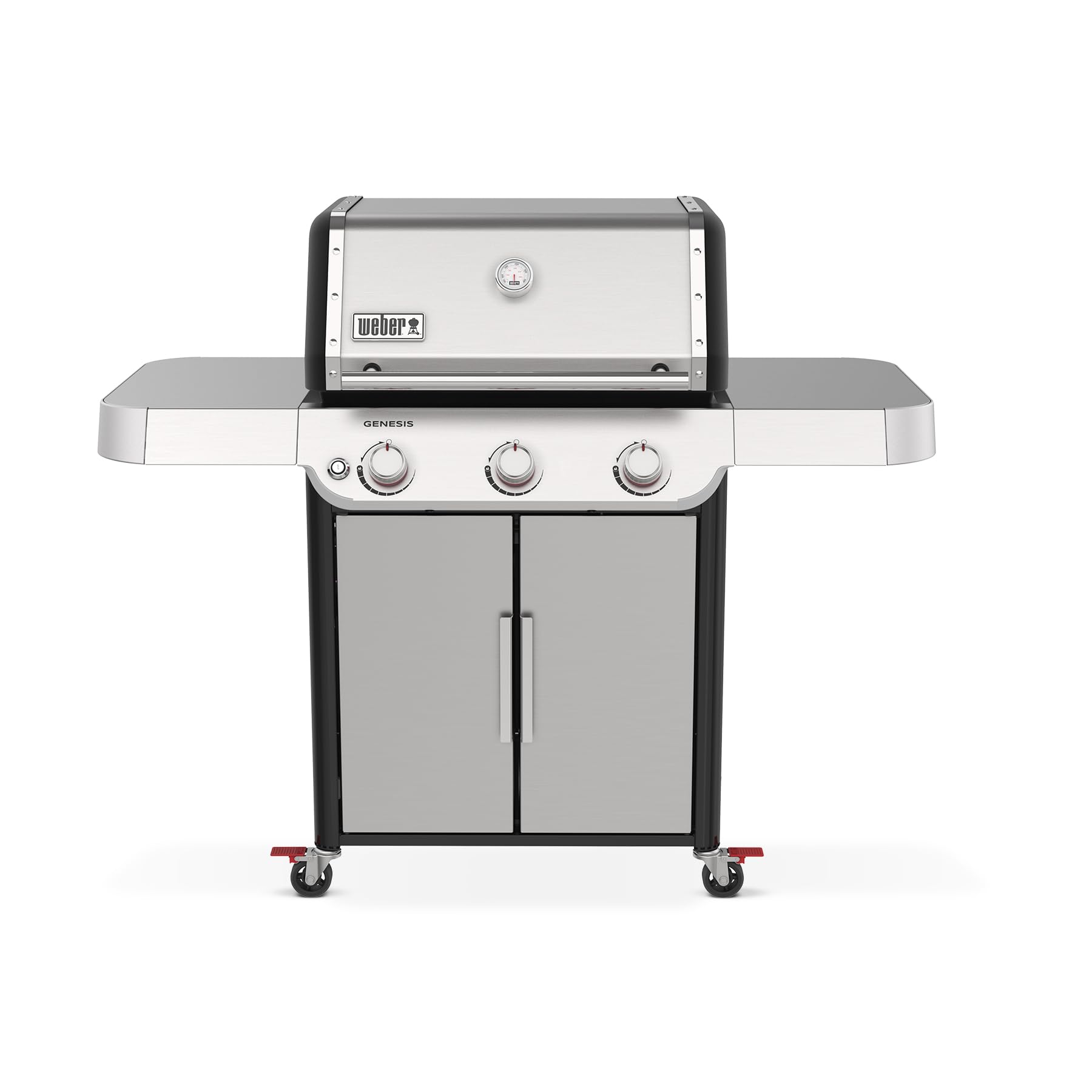 Moving the grill on its wheels was easy and the cabinet hides the propane tank neatly. We tried roasting a small chicken with even browning by using indirect heat, and the results were juicy. If you want a durable, no-nonsense three-burner Weber that you can upgrade with accessories, this is a solid pick.