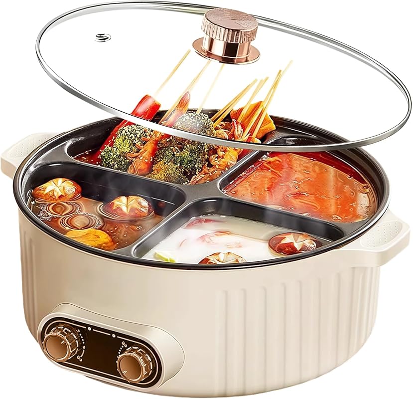 1. 6L Multifunctional Electric Hot Pot & Slow Cooker, 4 Compartment, 1800W, Non-Stick for Parties